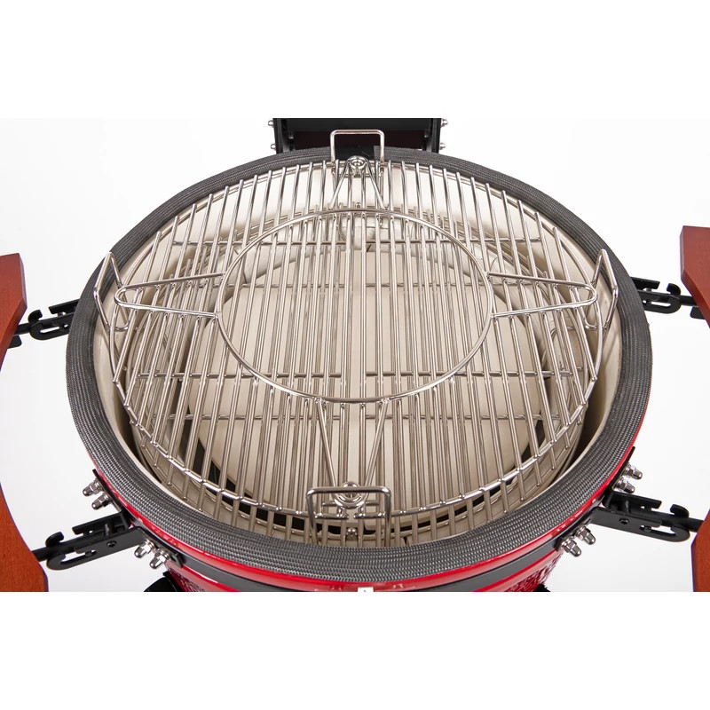 Az EVO Meater-t új kétszintes rácsrendszerrel láttuk el , ami természetesen tartalmazza az osztható deflektorkövet és az edénytartót. Az új nyitószerkezettel szinte súlytalanná válik a masszív kerámia dóm és biztonságosan megtartja azt miközben a húsokat forgatjuk a rácson.Az új rozsdamentes zárszerkezet tökéletesen zárja a kamadót , nincs elveszett hő és elpazarolt faszén.A zár billenő gombján lévő hőszigetelés gondoskodik arról, hogy akár grillkesztyű nélkül is egyetlen mozdulattal nyithassük a kamadónk tetejét.A beépített hamufiókkal az alsó szellőzőn akár üzem közben is üríthetjük a hamut, de füstölőfát is rakhatunk bele.A fémszálas tömítés tökéletesen zár valamint rendkívül tartós és strapabíró.