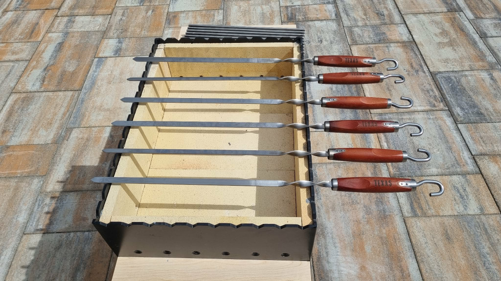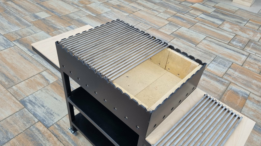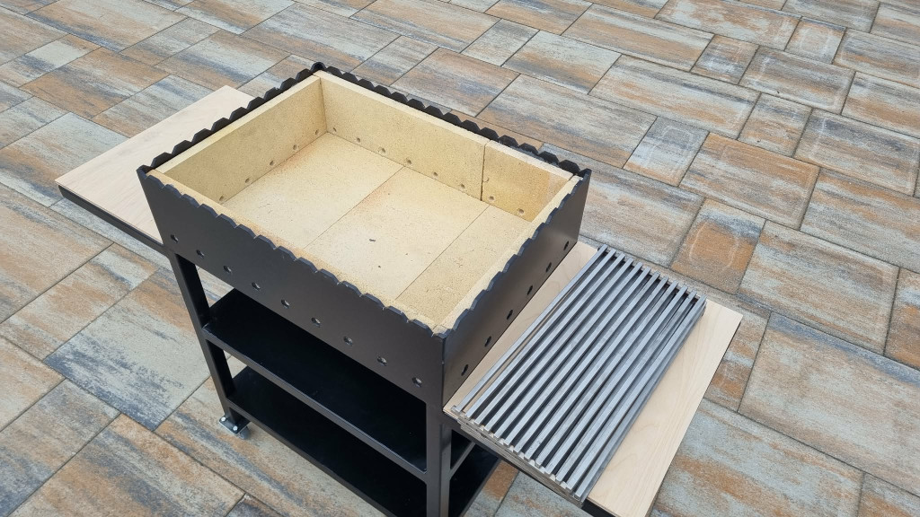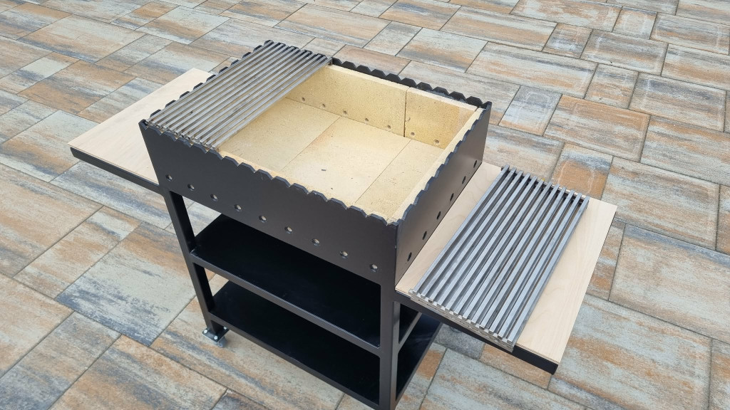 A tűztér 6mm-es lemezből készült, ami 2cm-es samottal van kirakva amely biztosítja a hosszan tartó égést, és a gazdaságos faszén használatot.